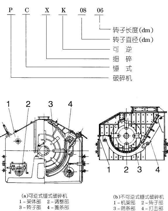 —破碎機(jī)分為左裝和右裝二種裝配形式,選用時若無要求,則按正常安裝圖供貨。右式裝配是指操作者面對機(jī)器轉(zhuǎn)子觀察口時,電動機(jī)安裝在右手側(cè)的形式,反之為左式裝配。
