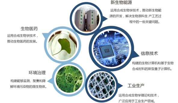 合成生物學(xué)對新生物能源的開發(fā)具有不可估量的作用,可以解決生物燃料生產(chǎn)工藝過程中的一些關(guān)鍵問題。當(dāng)今的人工合成細(xì)菌,可將糖類直接轉(zhuǎn)化成與常規(guī)燃油兼容的生物燃油,甚至可以直接從太陽獲取能量;更有使用合成基因組學(xué)方法,產(chǎn)生將自然界中的二氧化碳轉(zhuǎn)化為甲烷的改造菌,成為一個專門生產(chǎn)甲烷的全新生物體。隨著合成生物學(xué)的高速發(fā)展,以石油為中心的能源工業(yè)體系很可能被這樣的新能源生產(chǎn)方式完全代替。