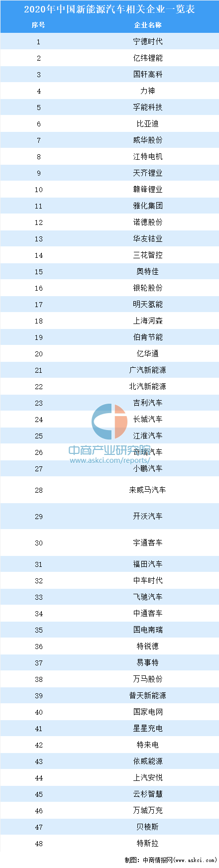 2020年中國(guó)新能源汽車相關(guān)企業(yè)一覽表