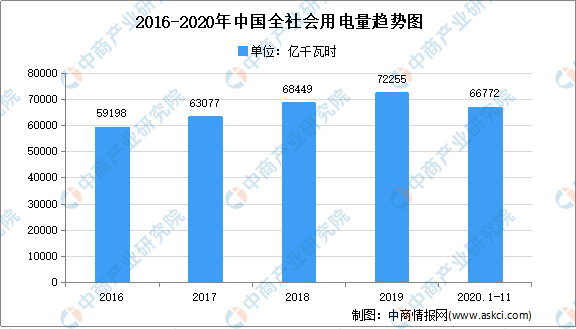 2020年,第一產(chǎn)業(yè)和城鄉(xiāng)居民生活用電保持較快增長(zhǎng),數(shù)據(jù)顯示,2020年1-11月,全國(guó)全社會(huì)用電量66772億千瓦時(shí),同比增長(zhǎng)2.5%,其中,11月份全國(guó)全社會(huì)用電量6467億千瓦時(shí),同比增長(zhǎng)9.4%。