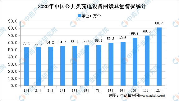 近年來,隨著新能源汽車保有量不斷提升,充電樁、換電站等基礎(chǔ)設(shè)施加快完善。數(shù)據(jù)顯示,截至2020年12月,聯(lián)盟內(nèi)成員單位總計(jì)上報(bào)公共類充電樁80.7萬臺(tái),其中交流充電樁49.8萬臺(tái)、直流充電樁30.9萬臺(tái)、交直流一體充電樁481臺(tái)。從2020年1月到2020年12月,月均新增公共類充電樁約2.4萬臺(tái)。