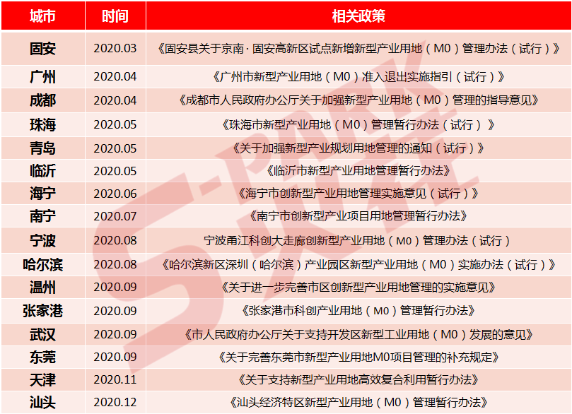 此前火花S-Park針對(duì)M0已經(jīng)有過專門的大部頭研究文章,有興趣的朋友可以點(diǎn)擊鏈接復(fù)習(xí)一下(《M0(新型產(chǎn)業(yè)用地)怎么玩?》)。我們這里只就2020年新出M0政策的14個(gè)城市做一下簡(jiǎn)單盤點(diǎn)梳理。