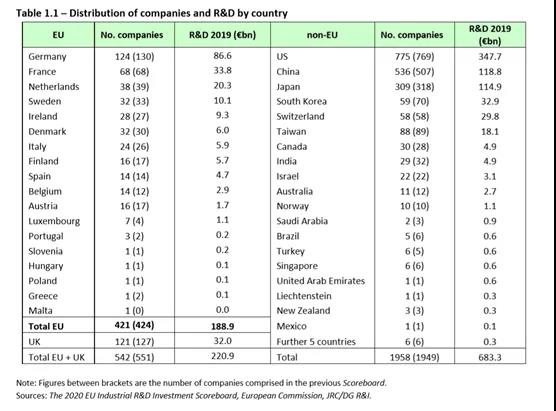 前不久,歐盟公布了2020年全球企業(yè)研發(fā)支出2500強,當(dāng)然雖然標(biāo)題是2020,但是其實使用的是2019年的全年數(shù)據(jù),這也是這個歐盟報告一貫的風(fēng)格。