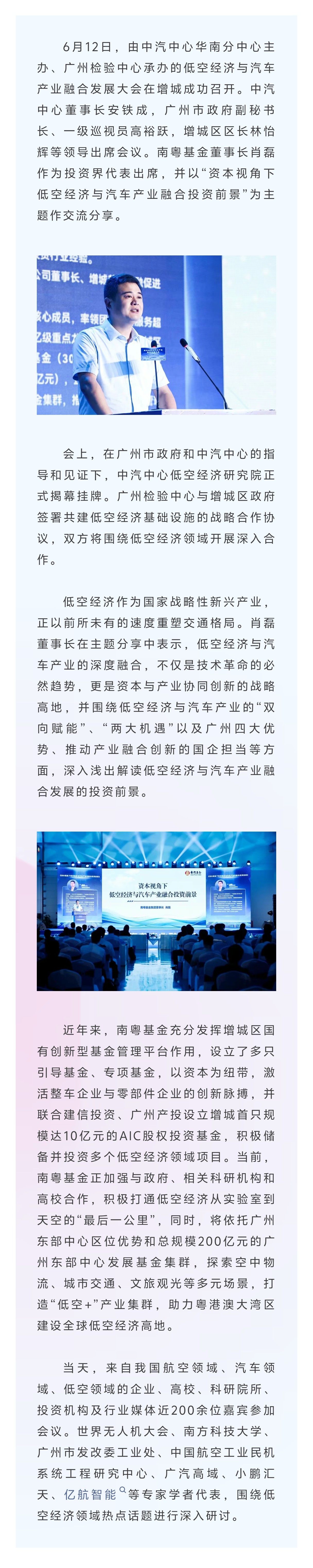 南粵基金董事長(zhǎng)肖磊出席低空經(jīng)濟(jì)與汽車產(chǎn)業(yè)融合發(fā)展大會(huì)