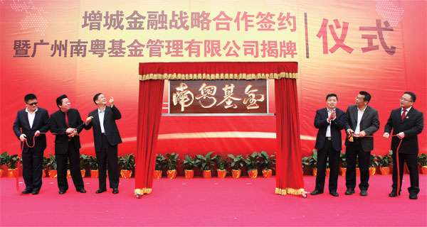 廣州市委常委、增城市委書記歐陽衛(wèi)民,增城市市長羅思源,廣州市金融工作局局長周建軍,湖南省岳陽市市委常委、常務(wù)副市長陳奇達,廣東省金融辦副巡視員夏虹,湖南省移民局副局長童康寧,增城市副市長葉鴻,廣州南粵基金管理有限公司、廣州市城市建設(shè)投資集團有限公司、廣州產(chǎn)業(yè)投資基金管理有限公司、建設(shè)銀行廣東省分行、廣州金融控股集團有限公司、廣州農(nóng)商行、平安銀行廣州分行、中南控股集團有限公司、廣東華興銀行總行、中信銀行廣州分行、興業(yè)銀行廣州分行等多家金融機構(gòu)、上市公司相關(guān)負(fù)責(zé)人,以及增城市相關(guān)部門負(fù)責(zé)人出席了儀式。儀式由增城市副市長鄧毛穎主持。
