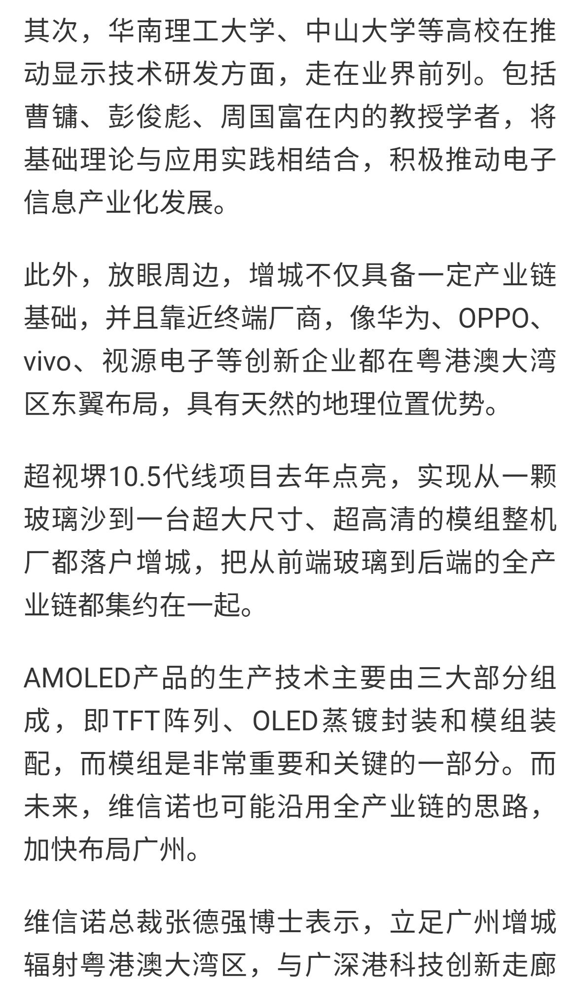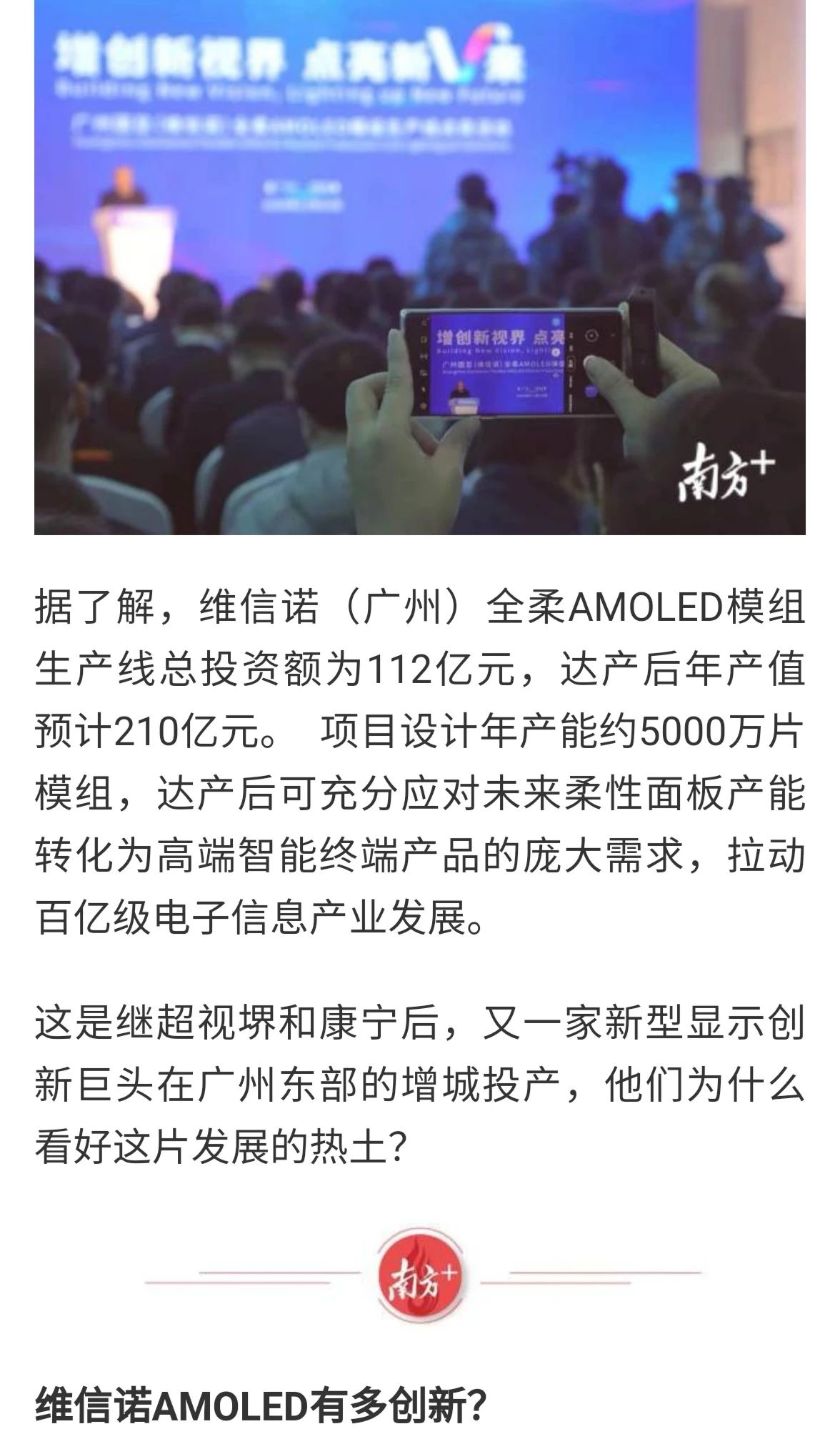 南方+|維信諾全柔AMOLED模組生產(chǎn)線點亮!廣州打造“世界顯示之都”再添新動力