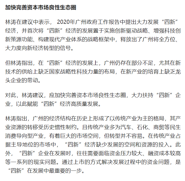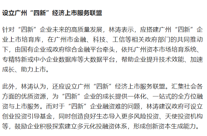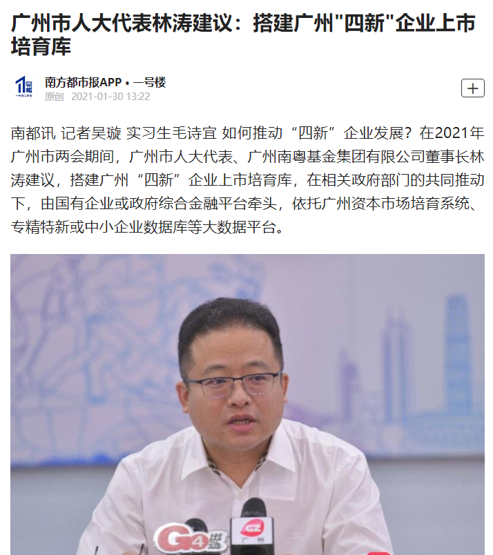 南方都市報|廣州市人大代表林濤建議:搭建廣州"四新"企業(yè)上市培育庫