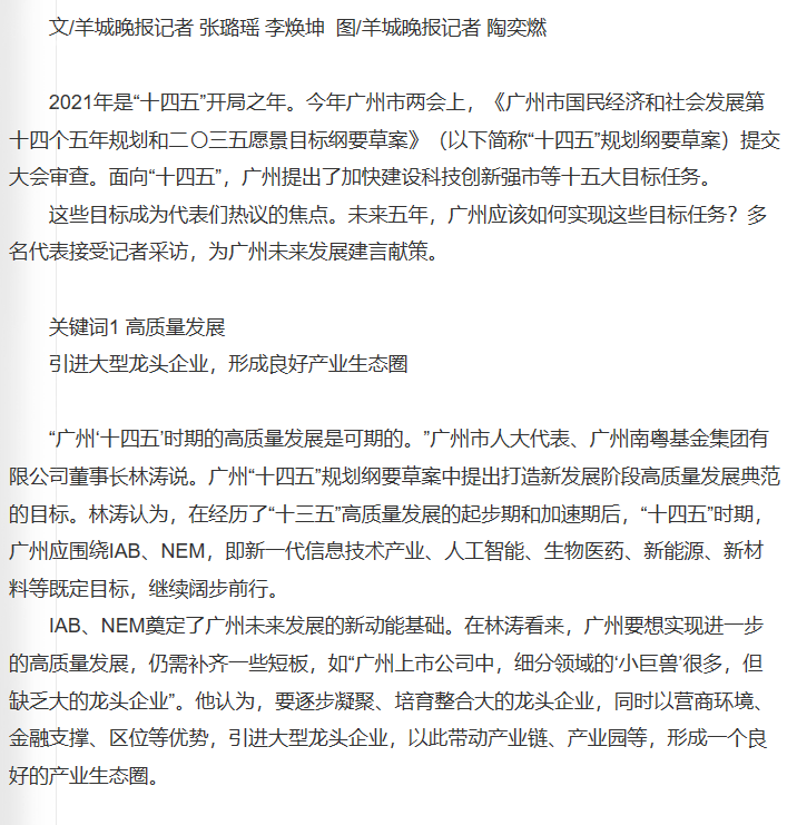 羊城晚報(bào)|代表熱議廣州“十四五”規(guī)劃綱要草案: 改革不停步,廣州才能永遠(yuǎn)年輕