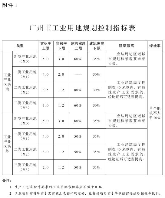 附件:1.廣州市工業(yè)用地規(guī)劃控制指標(biāo)表