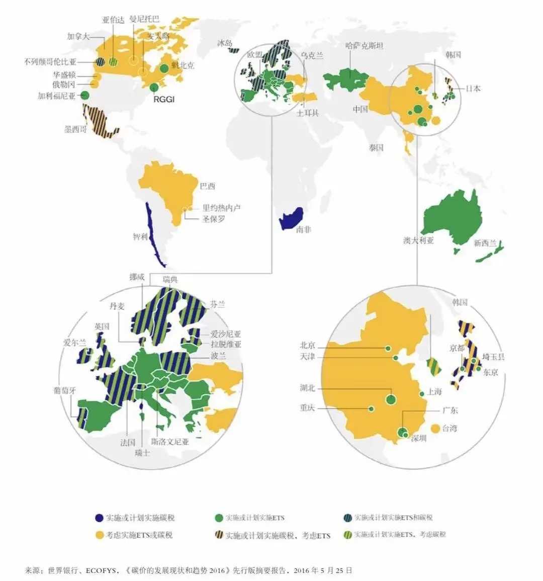 全球目前主要碳定價區(qū)